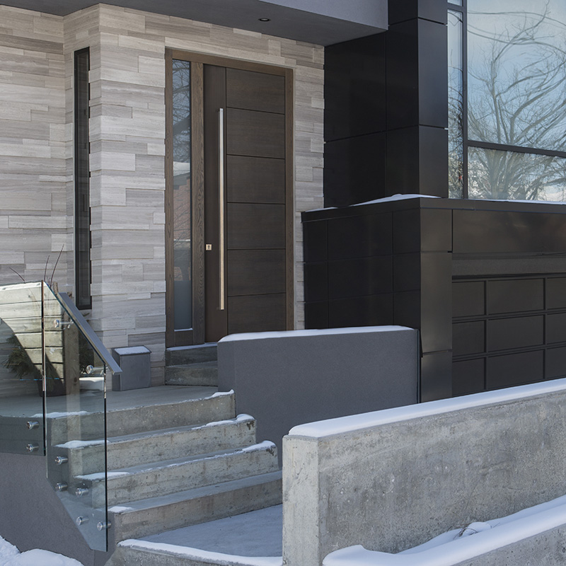 Certified Energy Star products used in these installations comply with Canada’s Natural Resources efficiency standards. Frame insulation, airtight locking systems, and UV-protected glass panes prevent cold air intrusion. Studies from Natural Resources Canada confirm that replacing an outdated entry door with a certified insulated model reduces heating demands by up to 15 percent annually.