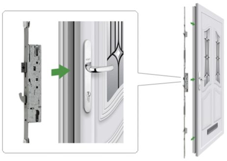 These locks activate automatically when you simply close your door –  not require any handle lifting to activate locking points. Both top and bottom ¾”(20mm) latches are instantly engaged. The system extends to almost the full height of the door because of multiple locking points along the edge of the door.