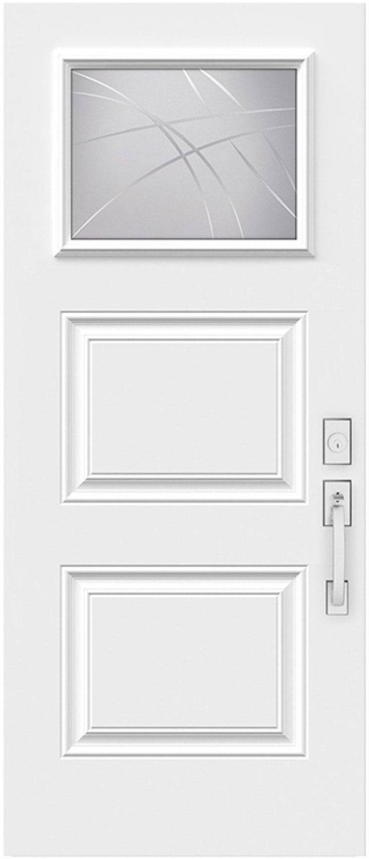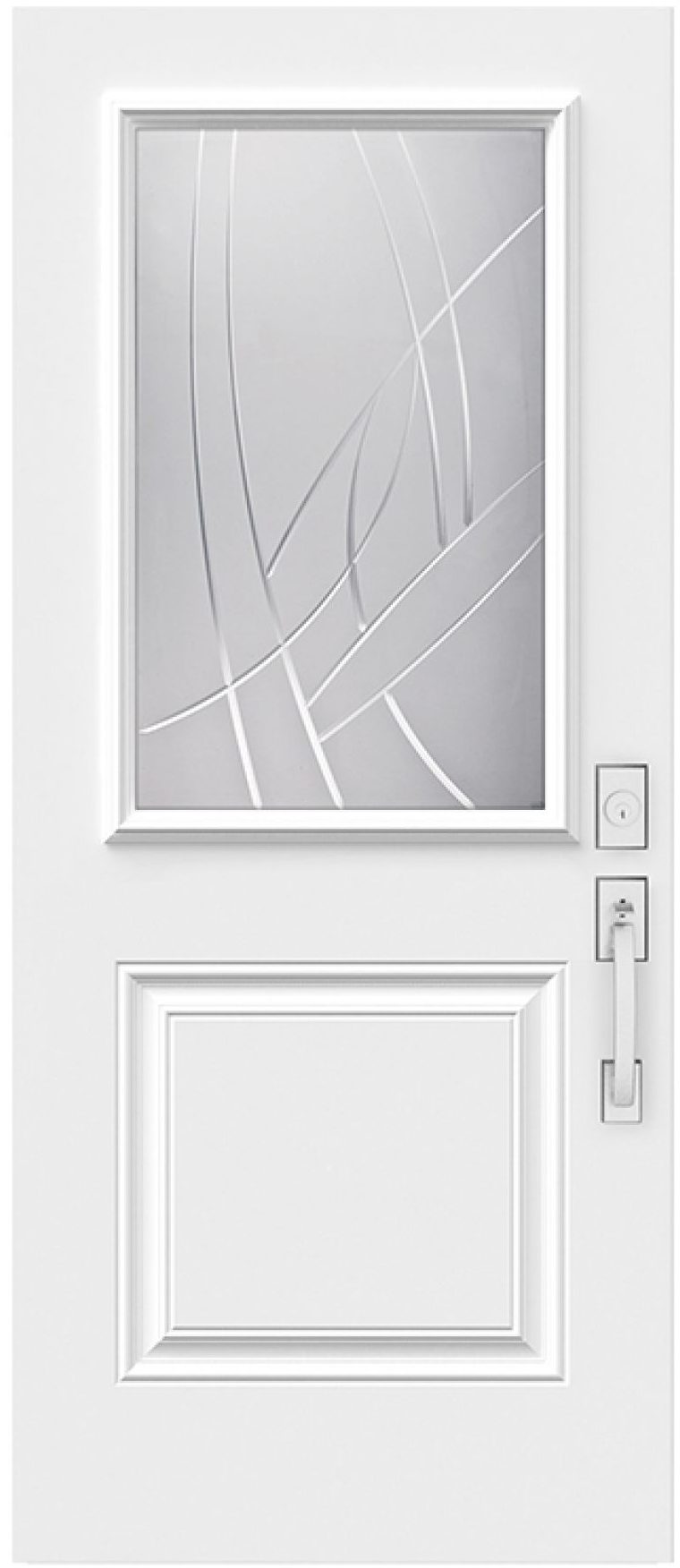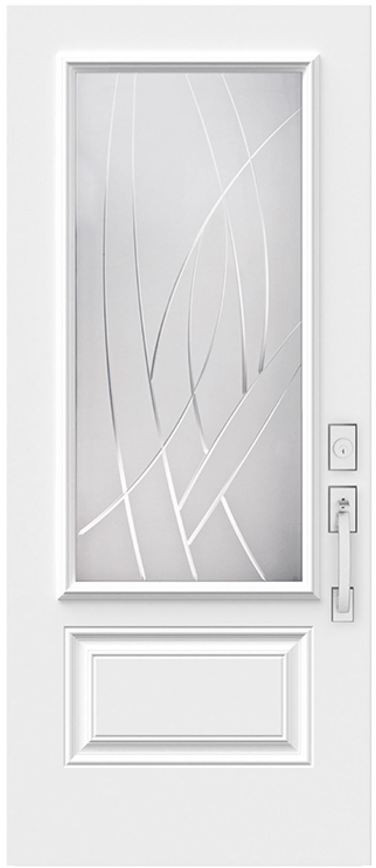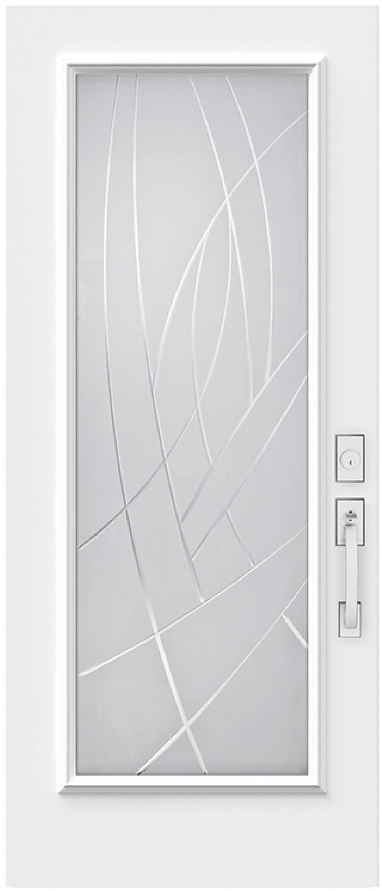 This semi-private, translucent glass is remarkable for being both organic and abstract. The glass delivers privacy, while the V-groove design showcases free-flowing artistic elegance and craftsmanship. This model makes an outstanding and appeasing statement feature for any entryway.
